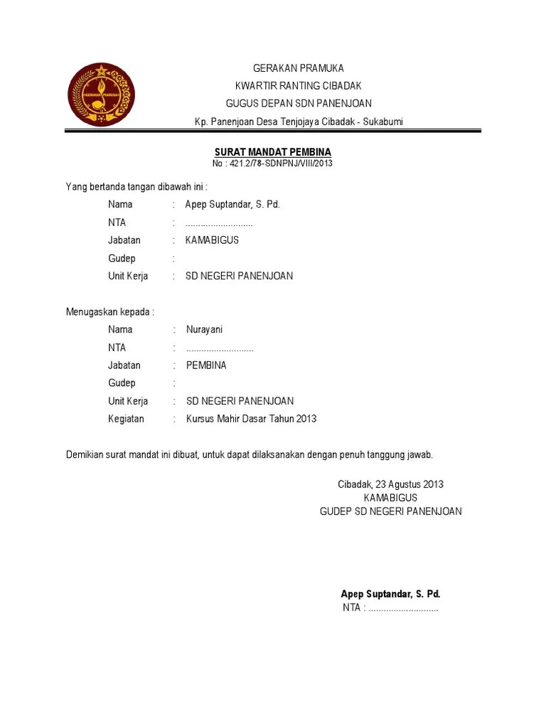 Contoh Surat Mandat Pramuka : Contoh Surat Perintah Tugas Pramuka Contoh Surat : Maybe you would like to learn more about one of these?